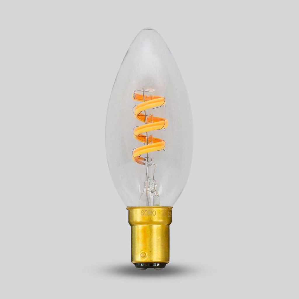 The candle shape and the spiral filament gives this a timeless appearance. This is a small bayonet B15 fitting, and the bulb requires a trailing edge dimmer switch.