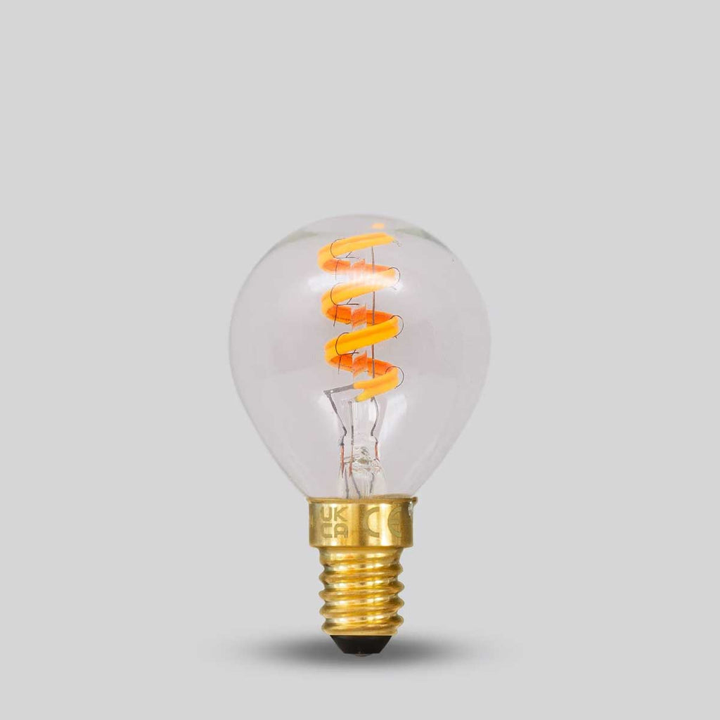 The small round shape and the spiral filament gives this a timeless appearance. This is a small edison screw E14 fitting, and the bulb requires a trailing edge dimmer switch.