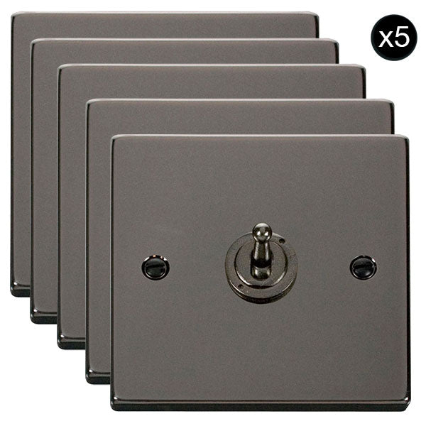 5 PACK - Our Black Nickel raised plate, toggle / dolly light switches will give any interior a boost of modern, classic design. With a choice of 2 way & intermediate options available. Intermediate toggle light switch will enable 1 light to be operated by another toggle switch located in a different area, i.e upstairs - downstairs hall.