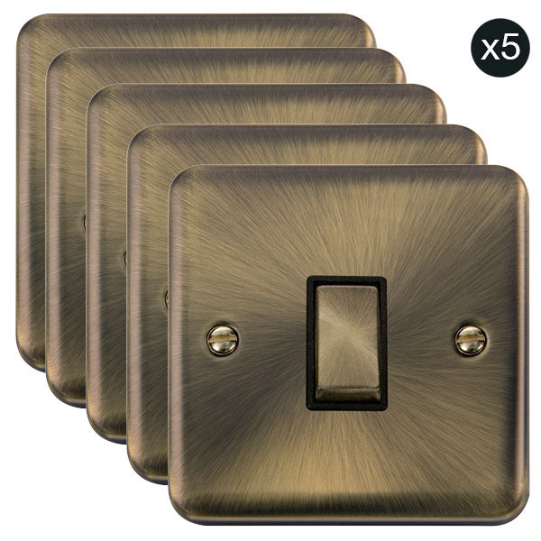 5 PACK - Our Curved Edge Antique Brass plug sockets & light switches are beautifully crafted with a sleek profile. Each plate has a subtle brushed spiral effect from the plate centre with rounded corners.