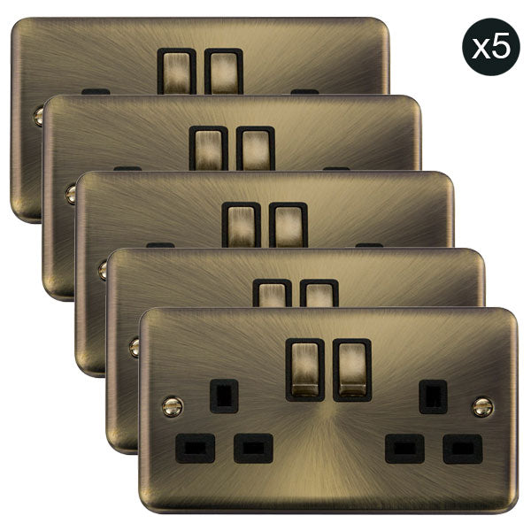 5 PACK - Our Curved Edge Antique Brass plug sockets & light switches are beautifully crafted with a sleek profile. Each plate has a subtle brushed spiral effect from the plate centre with rounded corners.
