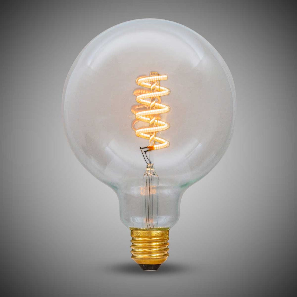 The globe shape and the spiral filament gives this a timeless appearance. This is an edison screw E27 fitting, and the bulb requires a trailing edge dimmer switch.