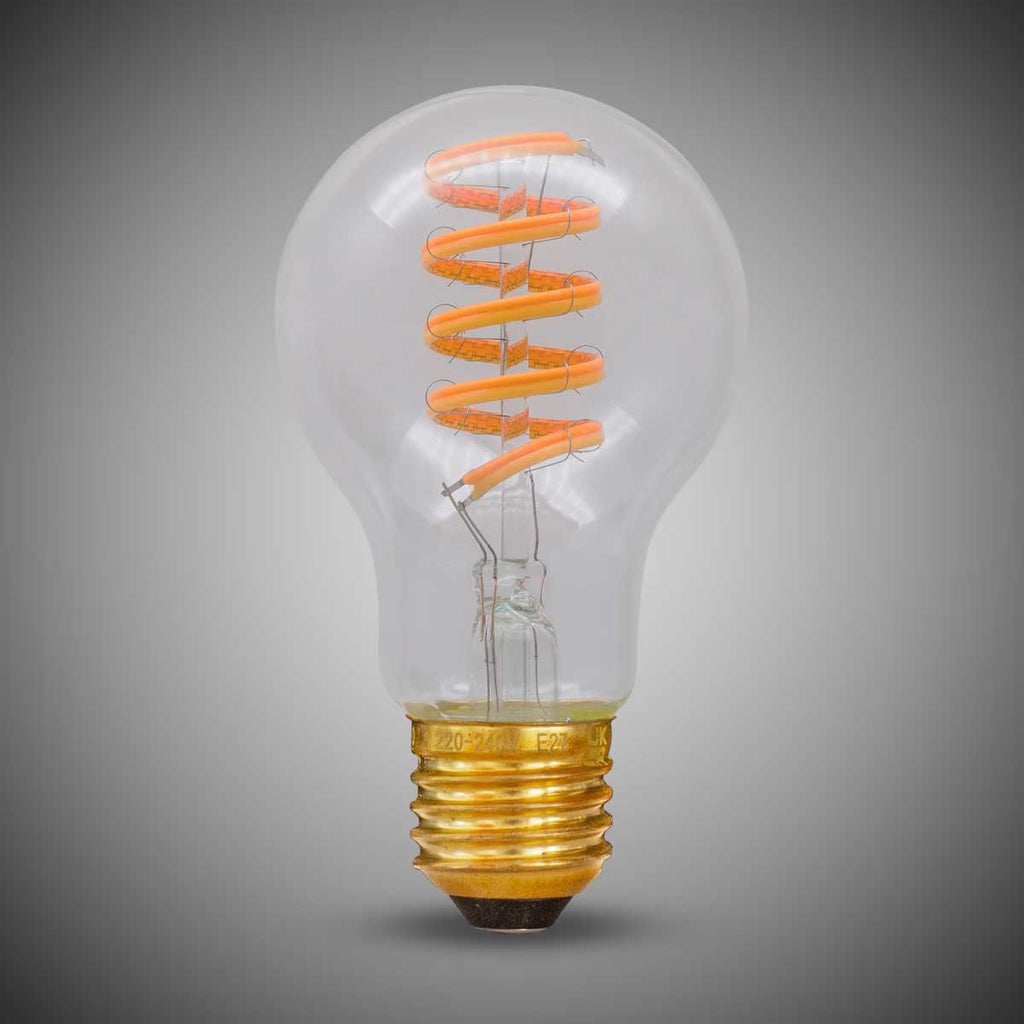 The classic GLS shape and the spiral filament gives this a timeless appearance. This is an edison screw E27 fitting, and the bulb requires a trailing edge dimmer switch.
