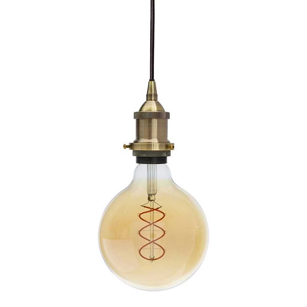 Antique Brass Decorative Bulb Holder with Black Round Cable