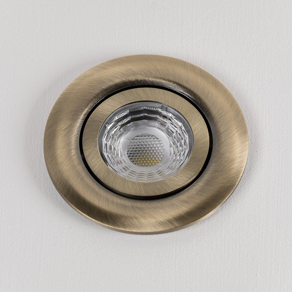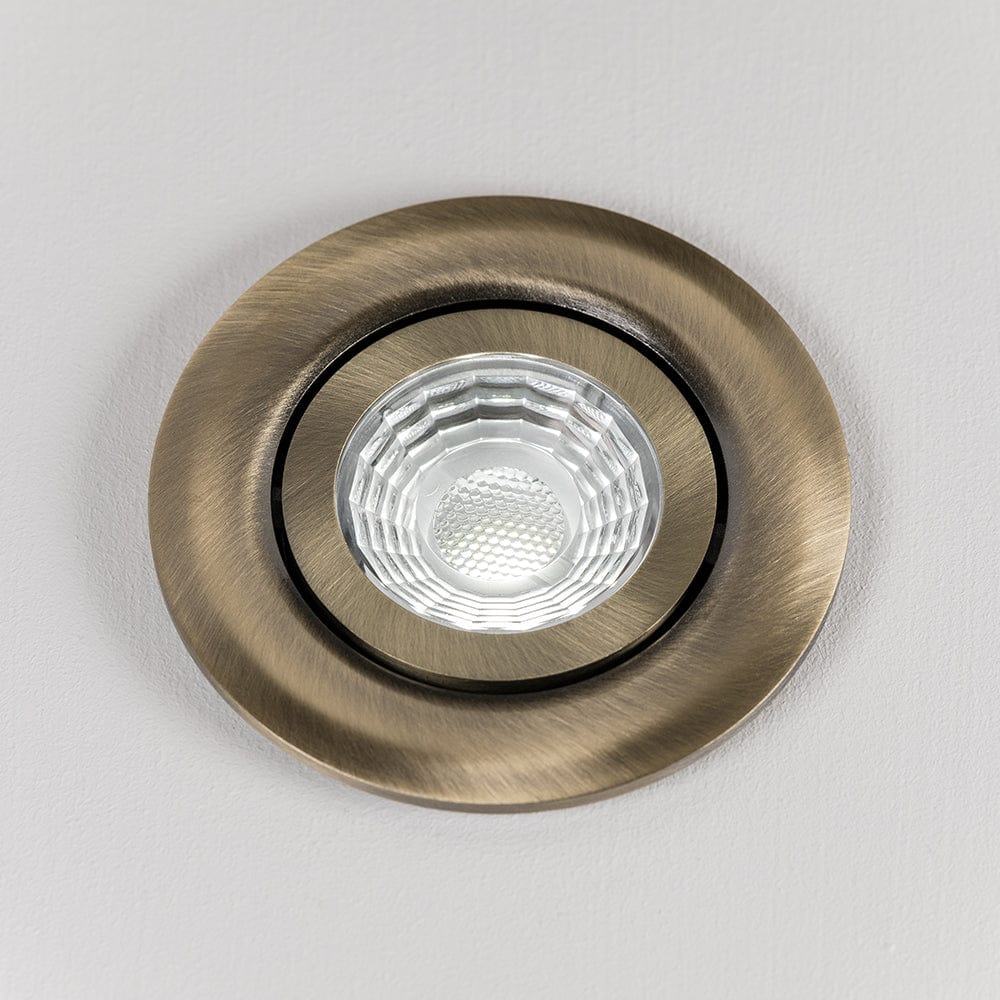 This tiltable antique brass LED downlight from our collection of beautiful dimmable fire rated downlights has a 4000k colour temperature. The tiltable design allows you to choose the angle of the light to suit the room.