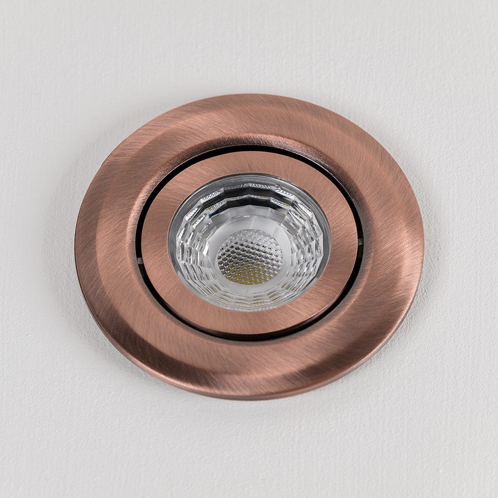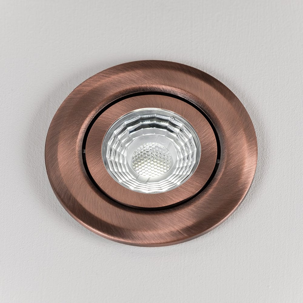 This tiltable antique copper LED downlight from our collection of beautiful dimmable fire rated downlights has a 4000K Colour temperature. The tiltable design allows you to choose the angle of the light to suit the room.