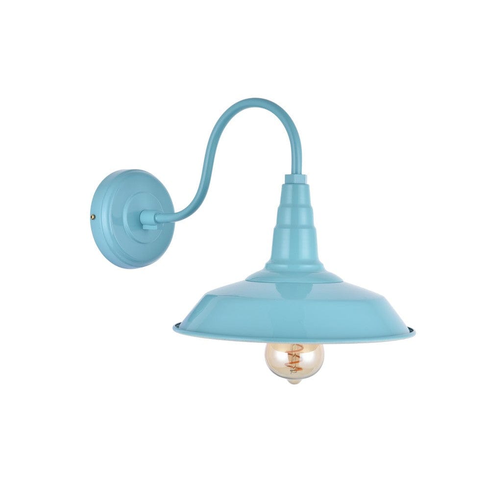 This stunning Argyll industrial style Duck Egg Blue / blue green / turquoise wall light has a wide, yet shallow pan shade and straight lines that provides a masculine tone and creates a vintage warehouse, country, industrial or retro look.