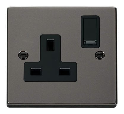 Black Nickel 1 Gang 13A DP Switched Plug Socket - Black Trim