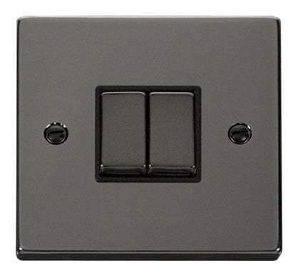 Black Nickel 10A 2 Gang 2 Way Ingot Light Switch - Black Trim