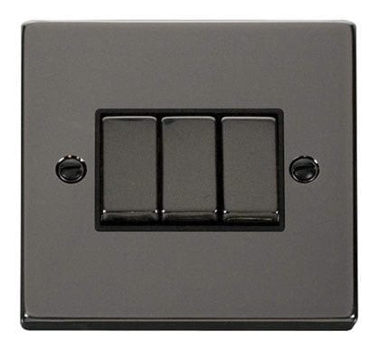 Black Nickel 10A 3 Gang 2 Way Ingot Light Switch - Black Trim