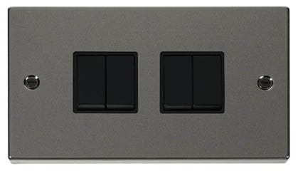 Black Nickel 10A 4 Gang 2 Way Light Switch - Black Trim