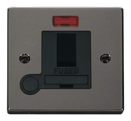 Black Nickel 13A Fused Connection Unit Switched With Neon With Flex - Black Trim