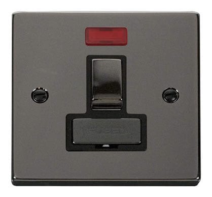 Black Nickel 13A Fused Ingot Connection Unit Switched With Neon - Black Trim
