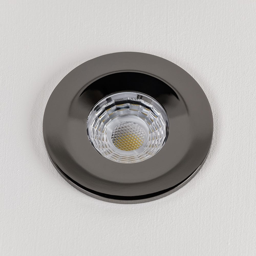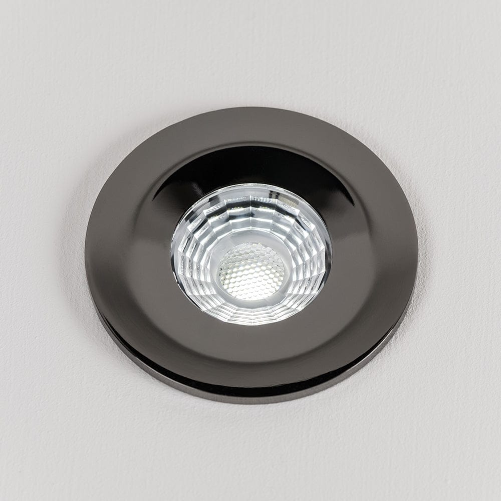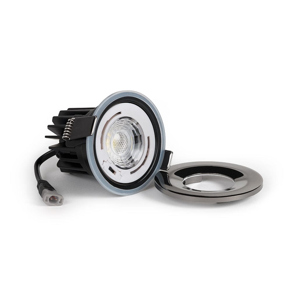 This fixed black nickel LED downlight from our collection of beautiful dimmable fire rated downlights has a front-facing CCT easy switch (Changing Colour Temperature) for easy access which enables you to quickly change between 3000K (warm white), 4000K (daylight white) and 6000K (cool white).