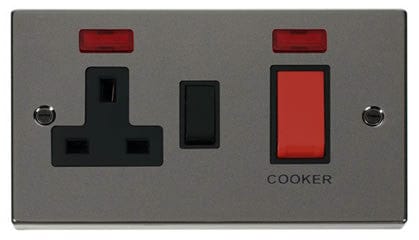 Black Nickel Cooker Control 45A With 13A Switched Plug Socket & 2 Neons - Black Trim