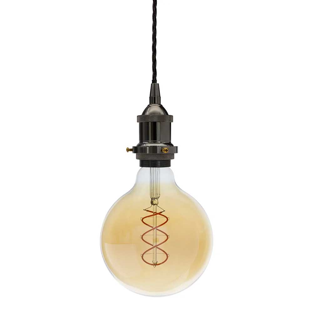 With a stunning black nickel finish, this decorative bulb holder pendant offers versatility, as it not only works as a standalone pendant light, allowing you to see the beauty of the bulb shape and colour, or you can use the shade ring to append your own light shade (Max 1.8 Kilos) with a 42mm diameter opening. The adjustable 1.5 metre drop means it can be used in a variety of room sizes and shapes, including settings with high ceilings. Try positioning above a kitchen island or dining room table.