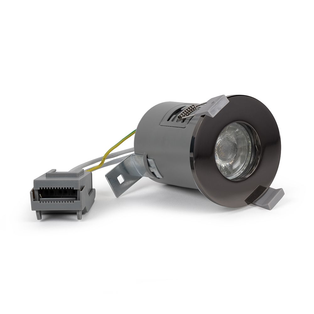A stylish GU10 fire rated downlight that is built with high quality components. Fire rated to 60 and 90 minutes, and robustly built with 2 connector clips for easy installation.