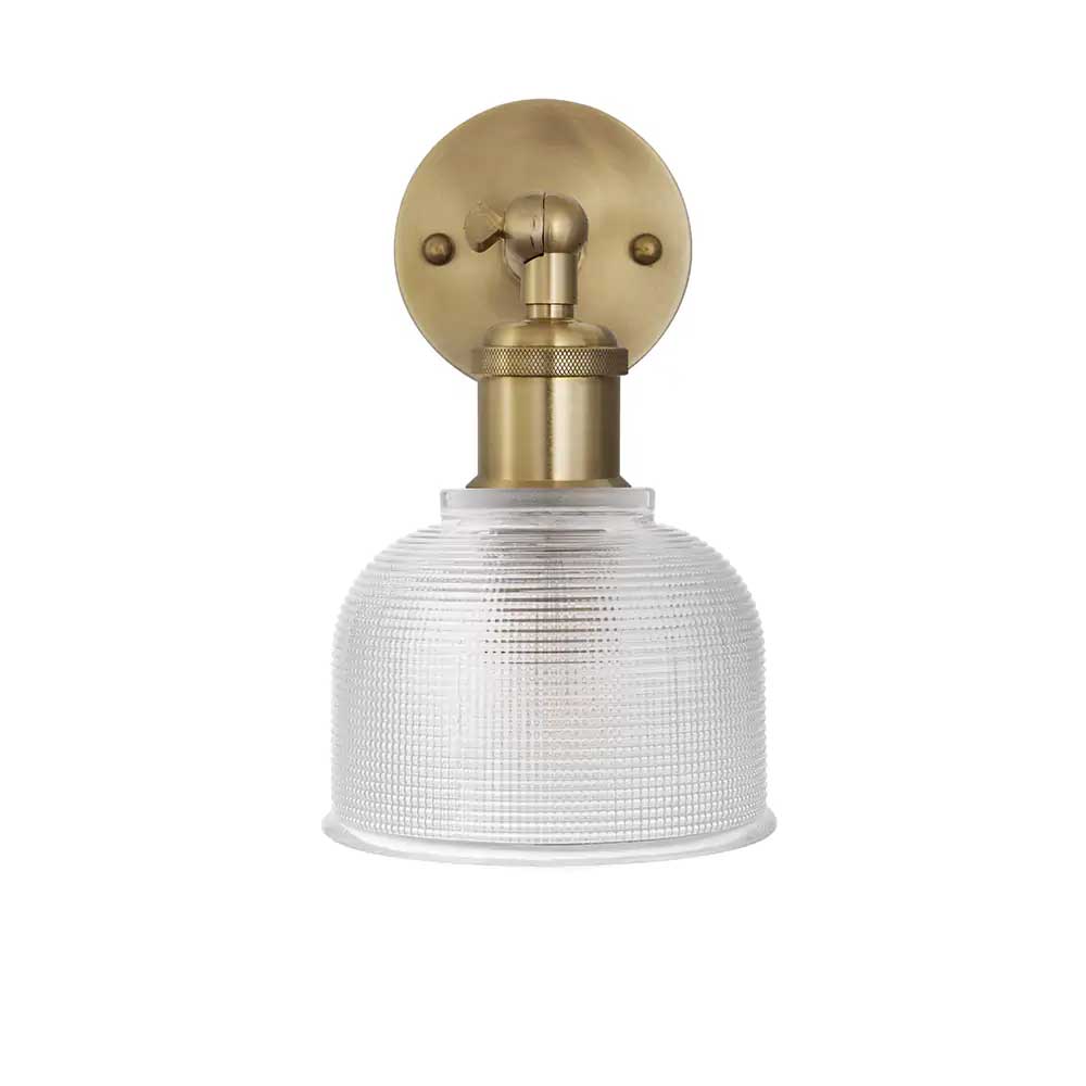 The charming Bronte dome wall light with handblown prismatic glass lends beautifully to modern and traditional settings alike. The subtle prismatic pattern softens emitted light, delivering a warming glow to its surroundings.