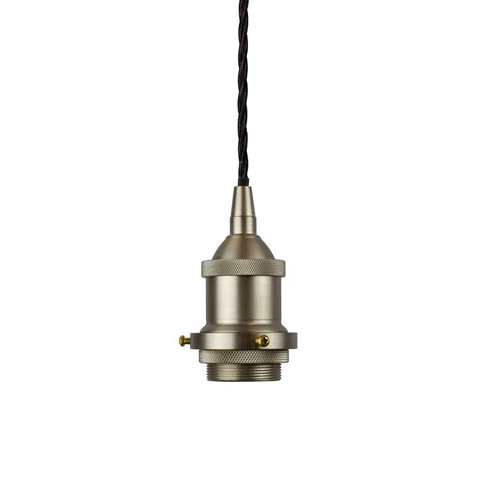 Brushed Chrome Decorative Bulb Holder with Black Twisted Cable