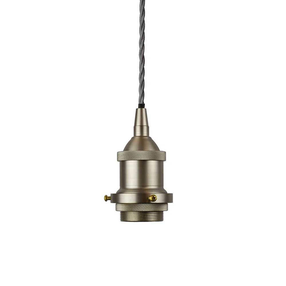 Brushed Chrome Decorative Bulb Holder with Grey Twisted Cable