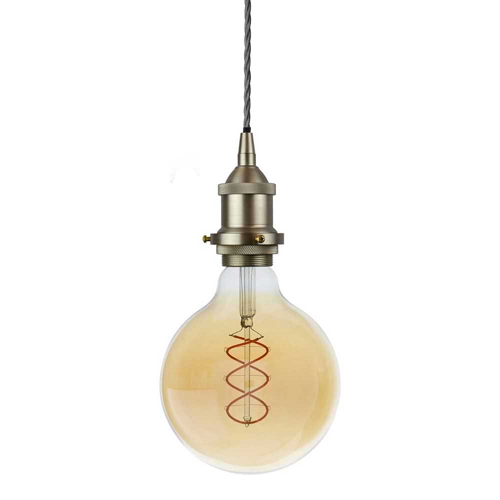 With a stunning brushed chrome finish, this decorative bulb holder pendant offers versatility, as it not only works as a standalone pendant light, allowing you to see the beauty of the bulb shape and colour, or you can use the shade ring to append your own light shade (Max 1.8 Kilos) with a 42mm diameter opening. The adjustable 1.5 metre drop means it can be used in a variety of room sizes and shapes, including settings with high ceilings. Try positioning above a kitchen island or dining room table.