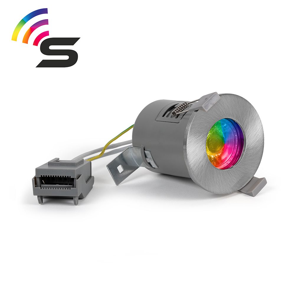 Brushed Chrome Fire Rated Colour Changing Smart LED IP65 Downlight