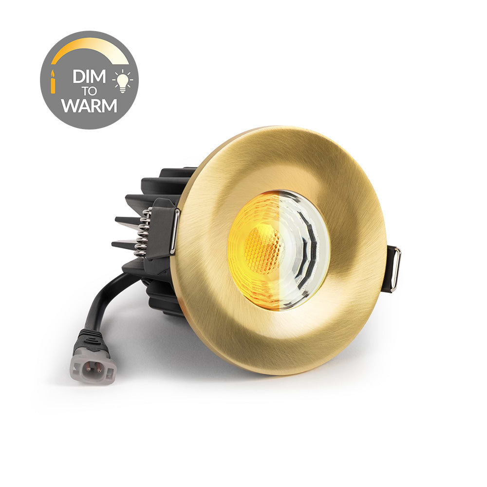This Brushed Gold Dim to Warm, Colour Changing LED Downlight offers an innovative way to give versatility to a living space or room. The clever LED enables you to adapt the light output from a cooler white light to a warm cosy glow with the use of a standard LED trailing edge dimmer. This is perfect for instantly changing the ambience and mood of your room from workday to evening soiree at the touch of a button.