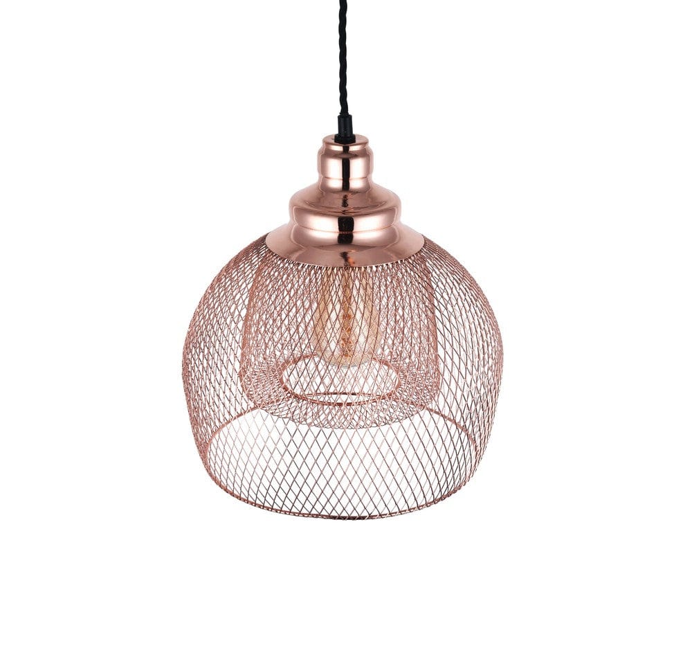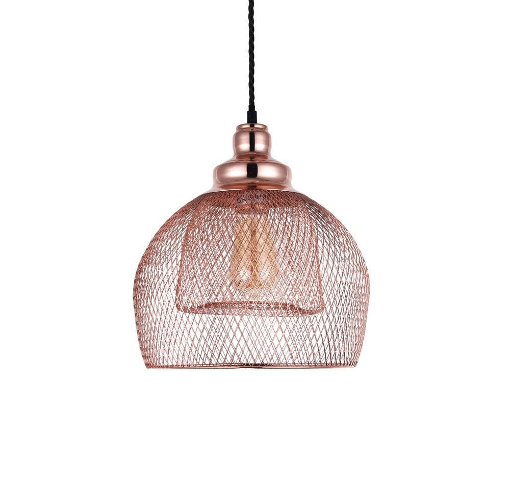 Eye catching and elegant without being attention seeking, the rose gold Cambridge wire cage dome pendant surrounds the light bulb with two wire mesh domes so the bulb is visible, but slightly shaded.