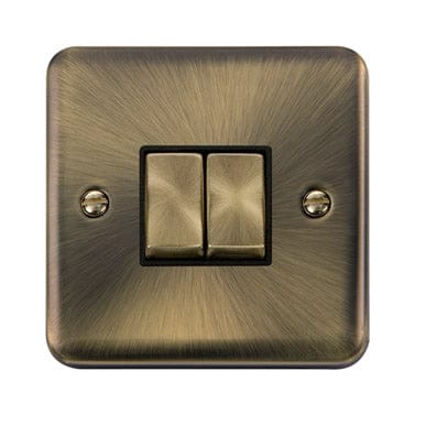 Curved Antique Brass 10AX Ingot 2 Gang 2 Way Light Switch - Black Trim