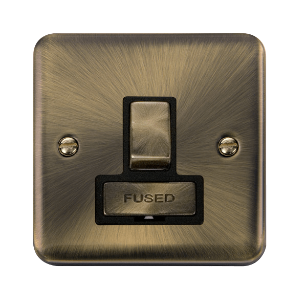 Curved Antique Brass 13A Ingot Fused Connection Unit Switched - Black Trim