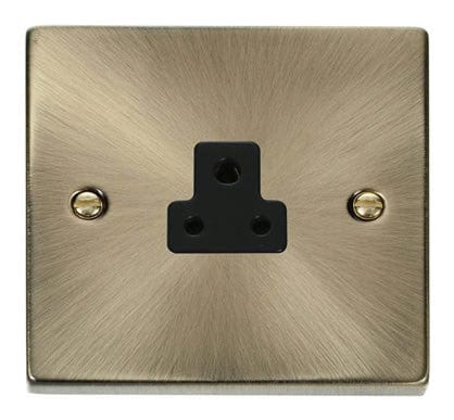 Antique Brass 1 Gang 2A Round Pin Socket - Black Trim