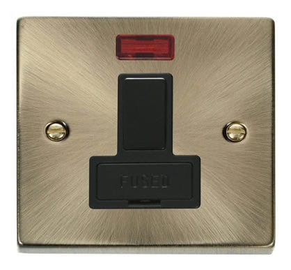 Antique Brass 13A Fused Connection Unit Switched With Neon - Black Trim