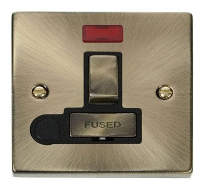 Antique Brass 13A Fused Ingot Connection Unit Switched With Neon With Flex - Black Trim