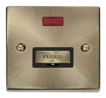 Antique Brass 13A Fused Ingot Connection Unit With Neon - Black Trim
