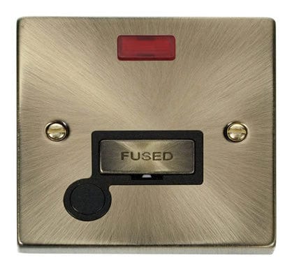Antique Brass 13A Fused Ingot Connection Unit With Neon With Flex - Black Trim