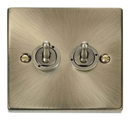 Antique Brass 2 Gang 2 Way 10AX Toggle Light Switch