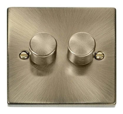 Antique Brass 2 Gang 2 Way LED 100W Trailing Edge Dimmer Light Switch