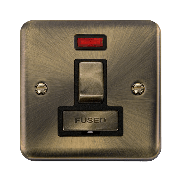 Our Curved Edge Antique Brass plug sockets & light switches are beautifully crafted with a sleek profile. Each plate has a subtle brushed spiral effect from the plate centre with rounded corners.