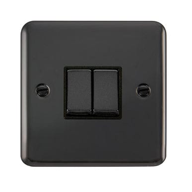 Curved Black Nickel 10AX Ingot 2 Gang 2 Way Light Switch - Black Trim