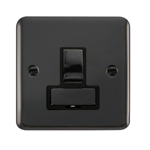 Curved Black Nickel 13A Fused Ingot Connection Unit Switched - Black Trim