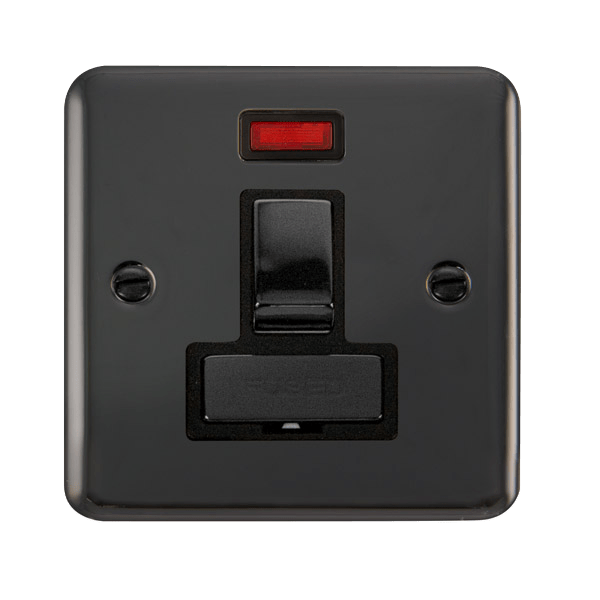 Curved Black Nickel 13A Fused Ingot Connection Unit Switched With Neon - Black Trim