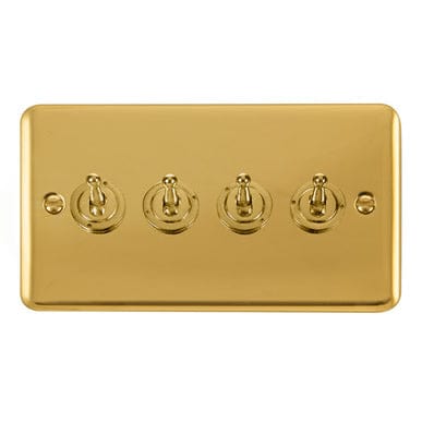 Curved Polished Brass 10AX 4 Gang 2 Way Toggle Light Switch