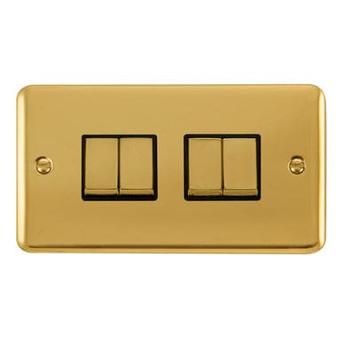 Curved Polished Brass 10AX Ingot 4 Gang 2 Way Light Switch - Black Trim