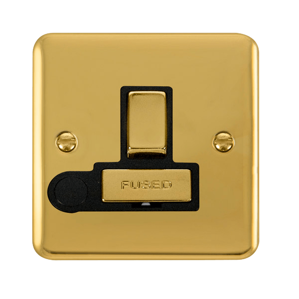 Curved Polished Brass 13A Fused Ingot Connection Unit Switched With Flex - Black Trim