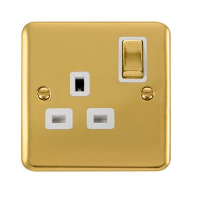 Curved Polished Brass 13A Ingot 1 Gang DP Switched Socket - White Trim
