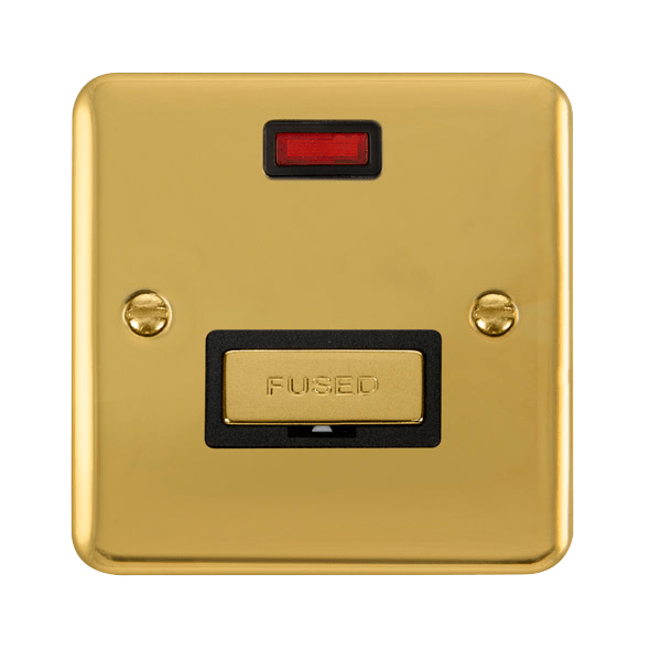 Curved Polished Brass 13A Ingot Fused Connection Unit With Neon - Black Trim