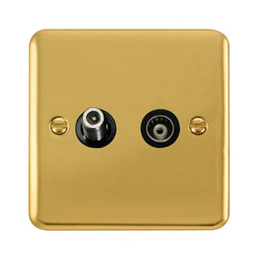 Curved Polished Brass Isolated Satellite & Isolated Coaxial Outlet - Black Trim