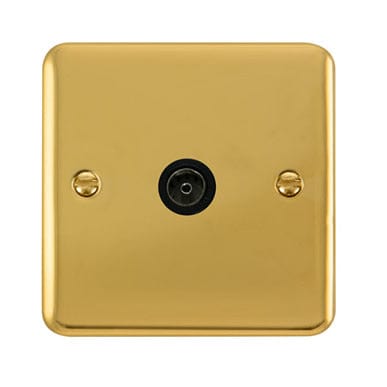 Curved Polished Brass Single Coaxial Outlet - Black Trim