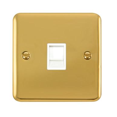 Curved Polished Brass Single RJ11 (Irish/US) Outlet - White Trim