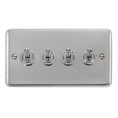 Curved Polished Chrome 10AX 4 Gang 2 Way Toggle Switch - Black Trim